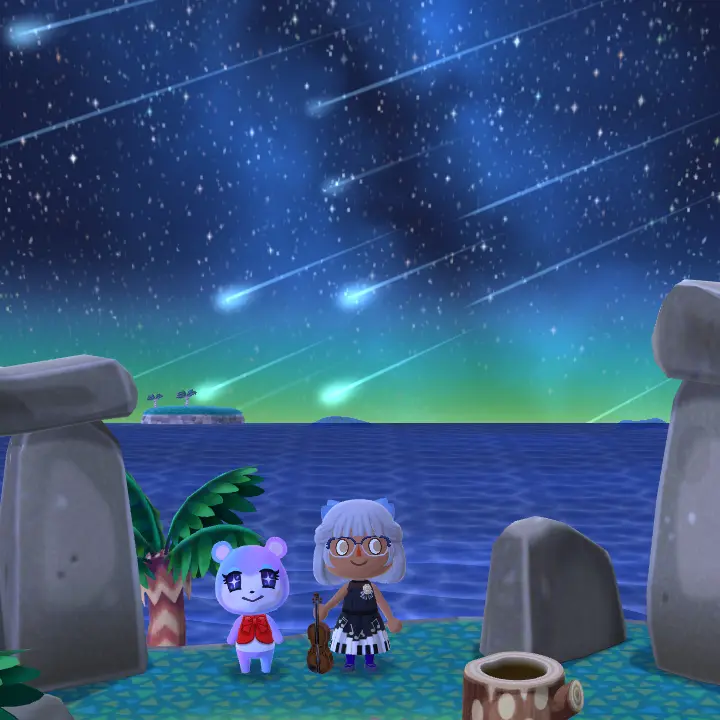 流星群イベントはなかなか激しい降り方をしていて、あつ森の流星群とはちょっと違った感じ。まあまあ世紀末感あってディストピア、いやメテオストライク。