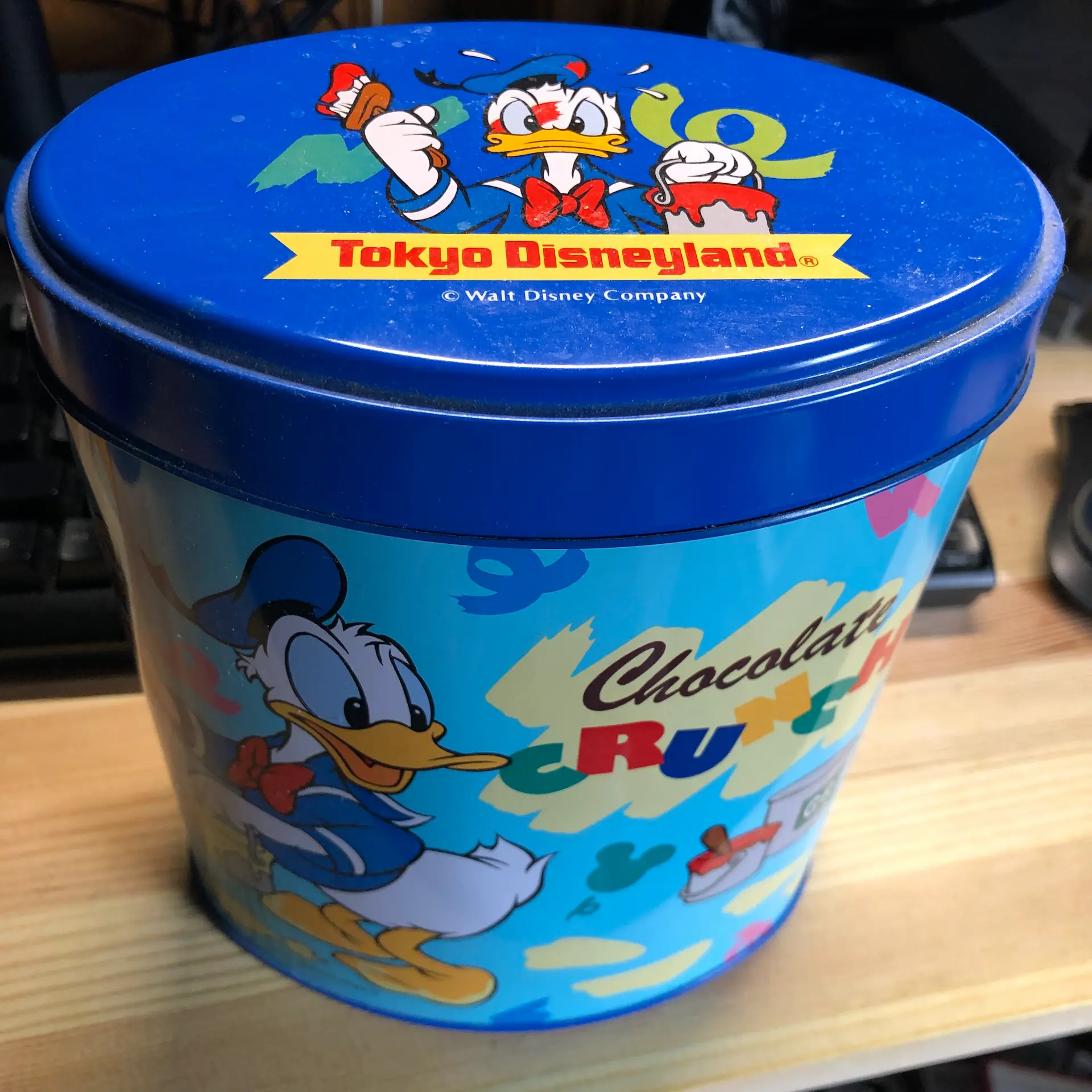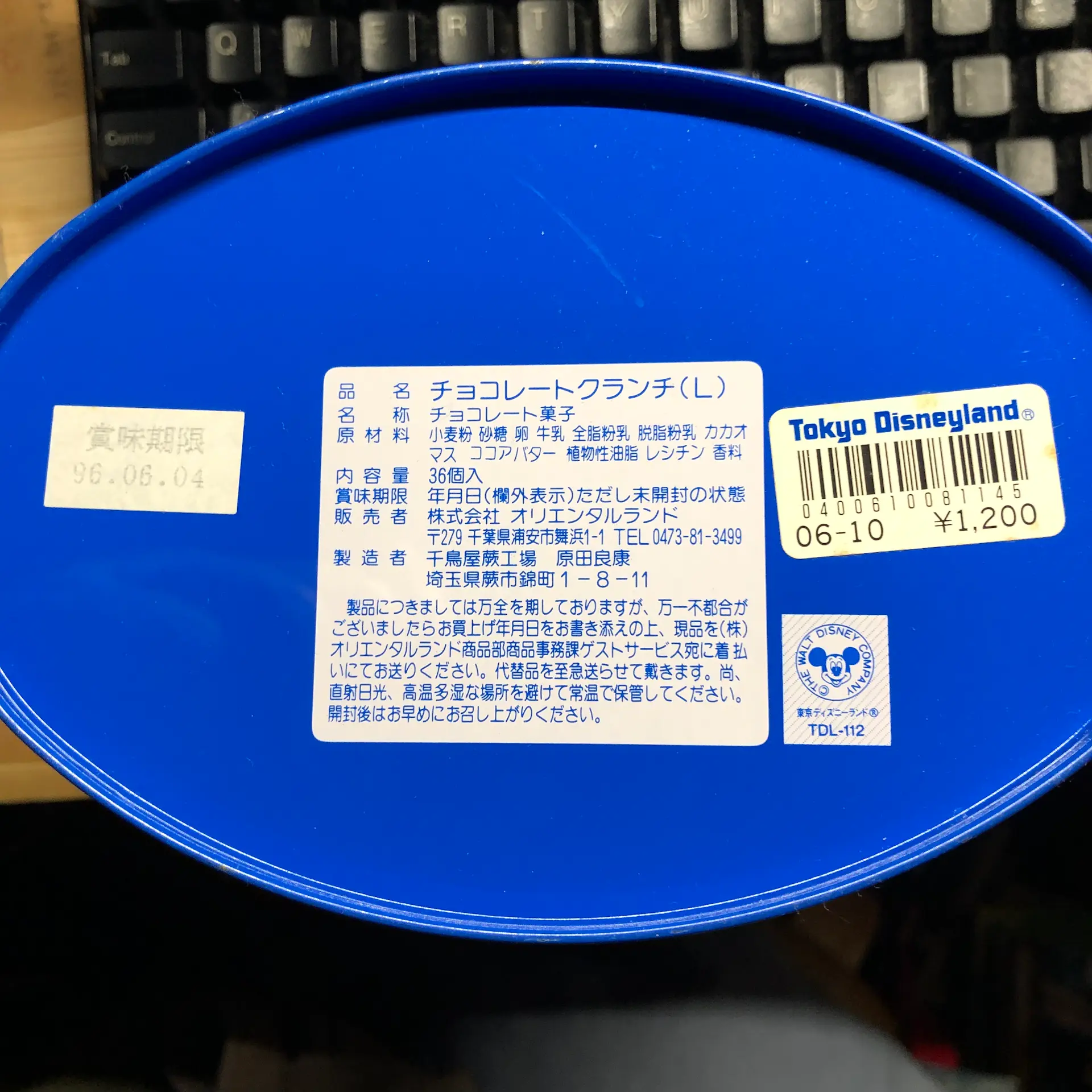 東京にあった総本家は2016年に倒産したらしいけど、クランチチョコという文字とディズニーリゾート向け菓子という文字があったので、もしかしてと思って家にある缶を見てみた(お手頃価格だったから大抵の家にこの缶はあると思う)。なるほど、これかあ。