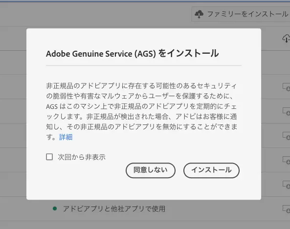 ゴールデンウィーク案内のバナーを作成する際、IllustratorからAdobe Fontsのフォントを探して追加したけどうまくいかない。はて、どうしてかな? とブラウザからの追加してみたり再起動してみても「追加中」から沈黙する。